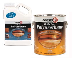 Zinsser Bulls Eye Polyurethane interior wood finishes come in both oil-based and water-based formulas.