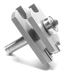 Amana Tool’s new Offset Mortise-and-Tenon bits are tungseten carbide bits, designed by Lonnie Bird, for constructing offset joints in Mission style glass doors.