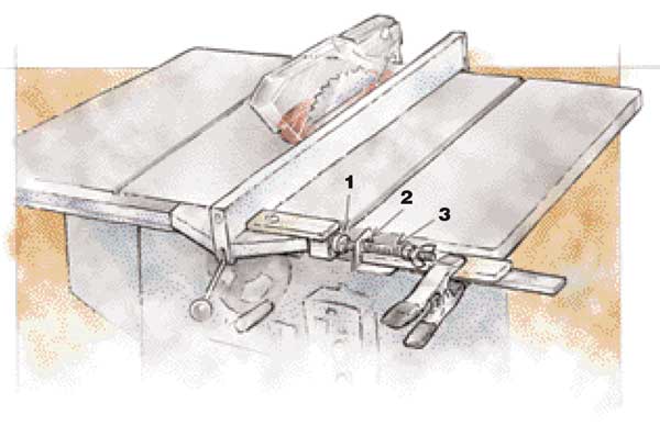 I often need to make fine adjustments to the position of my table saw rip fence, so I devised the following scheme.