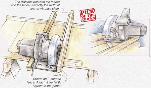 I built this jig to cut panels too awkward for the table saw in a one-man shop.