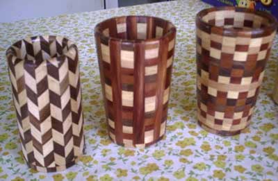 I started out making round bird houses and using that technique made a few pencil cups with straight sides.