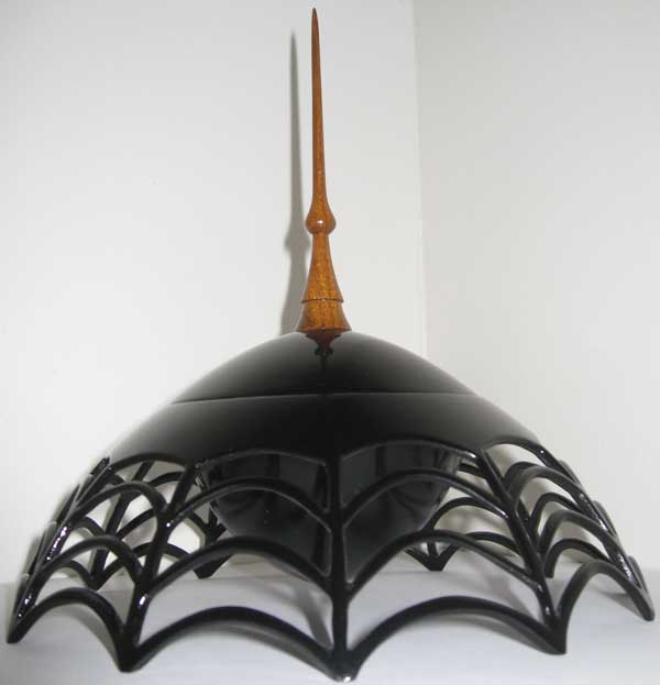 This is a box inspired by the spiders web, it is made from Lime and the final is Teak. It is turned on the lathe and carved with carving knife.