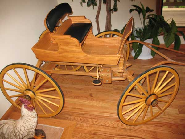 Buggy is 1/2 scale. I made all wooden parts. Springs, frame and all critical parts are quarter sawn white oak.