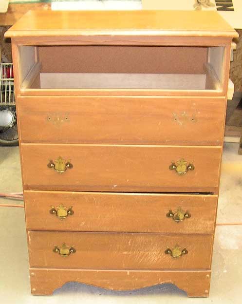 This is a simple dresser I restored. It’s all solid wood including the drawers which are dovetailed; the side panels and top are ply for strength and stability.