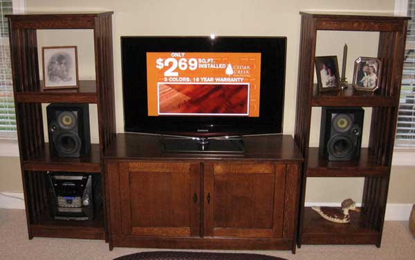 Here is a TV entertainment center I made. I got the idea from LL Bean and adapted it. Solid quarter-sawn oak.