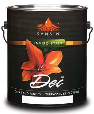Sansin’s 2-Coat DEC is a wood stain with modified natural oils and a waterborne formulation that uses water, not oil, to deliver stain color deep into deck wood.