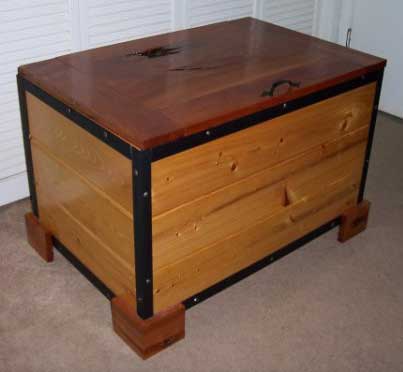 The piece is made from Cyprus, Cherry Planking and is lined with Cedar. The Cherry Planking was reclaimed from a barn in upstate NY.