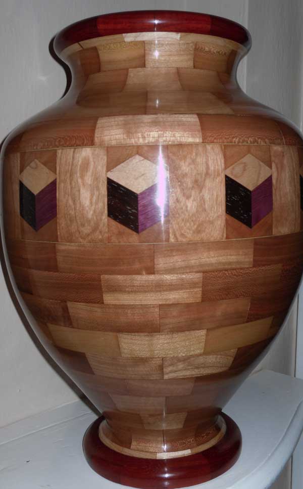 Below is my latest turning project. I made this for my wife because she is always complaining I make things for everyone but her. I used Cherry, Wenge, Maple, Padauk.
