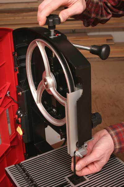 I purchased a new band saw about four months ago. How can I minimize wobble on the blade?