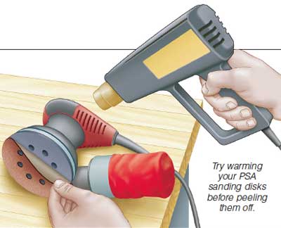 I prefer to use pressure-sensitive adhesive (PSA) backed disks on my random-orbit sanders, but peeling off the old, stuck-on paper can be a real chore.