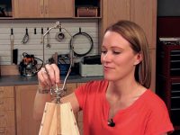 Could you please tell me how to drill a through hole down the center of a 15-inch turned table lamp stand to allow wire to be threaded?