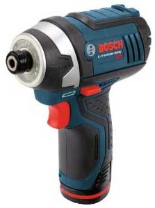 The Bosch PS41 12-volt Max Lithium Ion Impact Driver has the shortest head length in its class, at 5.4 inches, with a speed of 2,600 rpm and 930 inch-pounds of torque.
