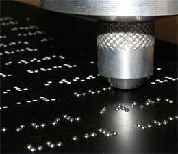 The Braille Insertion Tool from Techno CNC Routers will work with any CNC router to drill Braille holes and then insert Braille balls – without reconfiguring the machine.