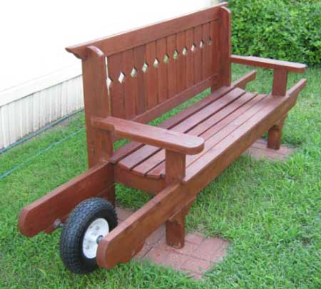 I made this redwood rolling bench about 15 years ago for my mother-in-law. It has withstood the elements very well.