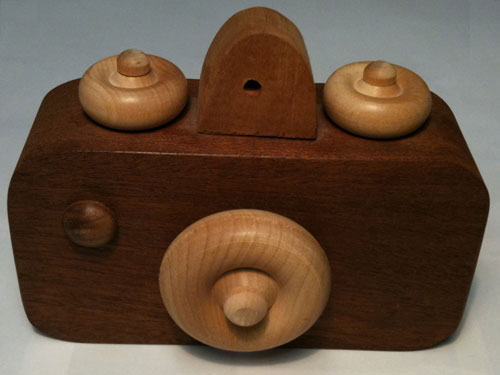 I built this little camera a few years ago for visiting kids to play with. (A niece was really into the toy camera phase at the time.)
