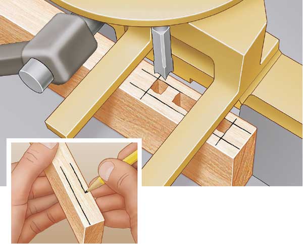 Borrowing from my technique for cutting centered grooves on a table saw, here’s how I make centered mortises without having to find the center first.