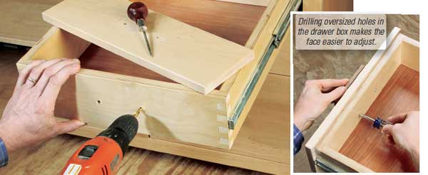 When I build drawers with applied faces, here’s how I make the faces easy to adjust.