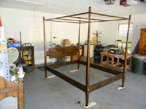 This is a pencil post bed with a canopy on the top. It is made out of African Mahogany and has a coat of Minwax walnut stain on it.