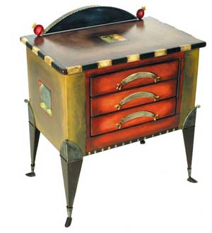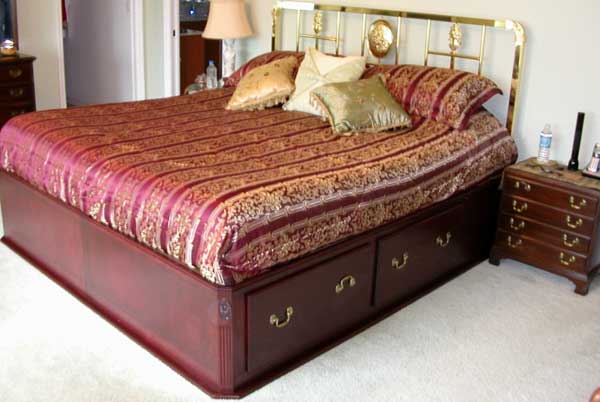 The two ottomans (ottomen?) were made to match the existing Ethan Allen dressers and side table. Cherry with maple drawers and a mahogany lid.