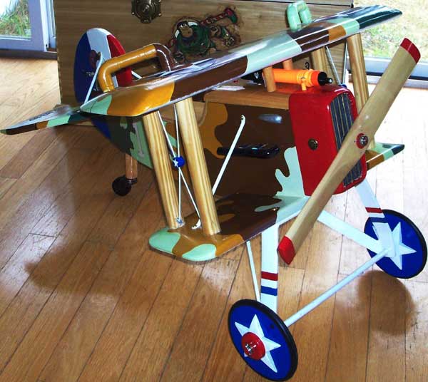 I designed and sized the plans to fit a 2 year old. When the machine gun red button is pressed, it makes a firing sound and lights up.