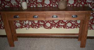 Our most recent project (I’ve had about five projects start with that catalog so far) is a buffet table for our living room. I used Aspen with a Pecan stain.
