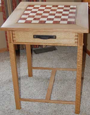 Chess table for my son at Christmas. Quarter sawn white oak, with maple and bubinga squares.