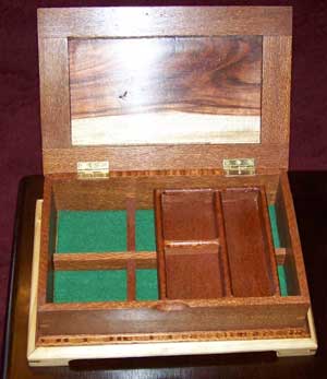 This is a jewelry box I made for my sister in Melbourne. It is the first of this type I have made and was done more as a trial piece.
