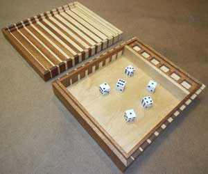 I made this striped mitered box for the dice game called Farkle, which my family and I love to play, for a present for my brother in-law.