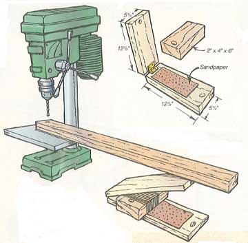 When using my bench model drill press on long pieces of wood, I often run into trouble holding the stock level as I drill one end.