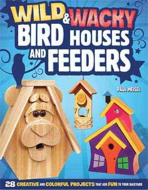 The book Wild & Wacky Birdhouses and Feeders by Paul Meisel incorporates plans for whimsically styled squirrel feeders and birdhouses.