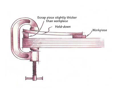 C-Clamp and a Bit of Scrap Substitute for Hold-Down