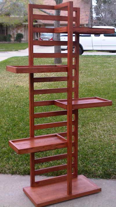 Here is a bookshelf I built out of red oak, stained with a General Finishes oil stain in “warm cherry” and finished with three coats of gel top coat.