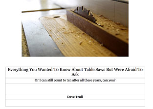 Furniture maker Dave Trull of Trull Gallery in Gulfport, Florida, has published his first e-book, an introduction to the table saw with a light approach.