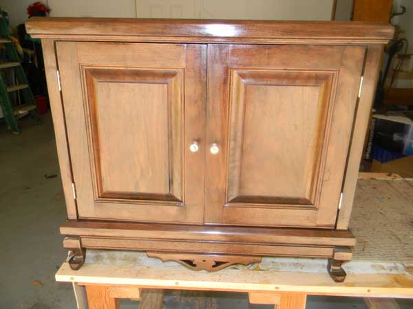 This is a walnut armoire. I designed and built it for a lady that collects little jars of face makeup. Altogether she has around 500 jars.