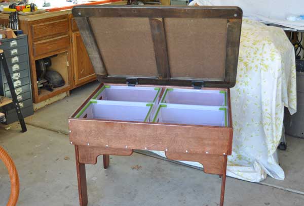 I made this out of cabinet grade plywood and white board. The top hinges are 60# friction cabinet.