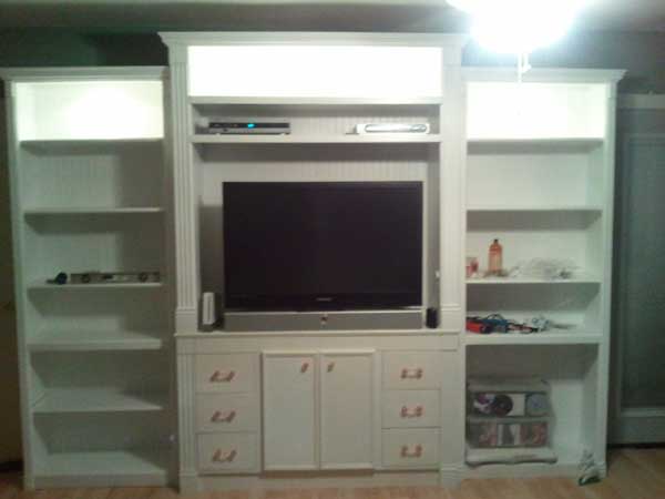 I built this entertainment center for the living room. My wife likes white so I finished it in a semi-gloss, pure white paint.
