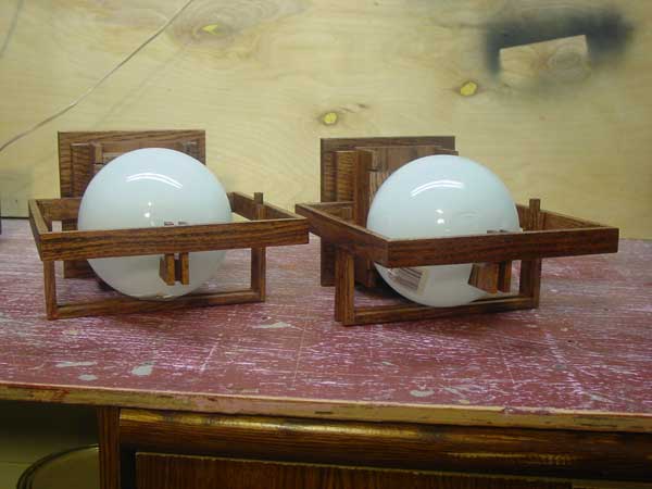 I made the sconces based on the Robie House dining room sconces. First I did CAD drawings of the original sconce and built two of them to prove the design.