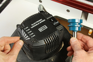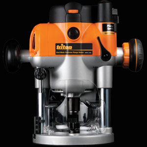 Triton’s TRA001 Dual Mode PrecisionPlunge Router can be used either handheld or mounted in a router table.