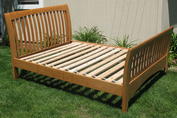 My latest project, a queen size sleigh bed made of cherry. Legs are four pieces of 3/4 cherry glued together and shaped on a bandsaw.