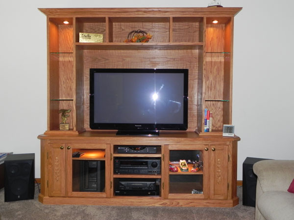 Looked for a ready-made entertainment center for ‘time’ issues. Was not happy with anything I found, so I took the best of two different designs and came up with this!