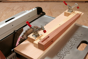 With a clip on light, a length of stock, and a 12 inch handscrew, you’ll be able to quickly make a portable light source for the workshop.
