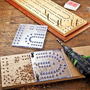 The Rockler Extra-Large Cribbage Template is a two-piece template, designed to work with Rockler 1/4″Deluxe Cribbage Pegs, that creates a cribbage board two to three times larger than the typical board.