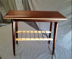 Ted Golbuff is a woodworker who has also designed studio furniture for a public radio station. For instance, he’s done some shoji screens, and some of what he calls “hockey Serving Traystick furniture.”