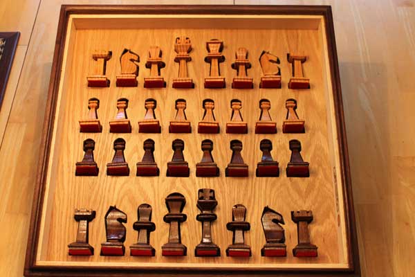 This is a chess set made from Maple and Walnut for the chess pieces and board. The monogram inlay is Cocobolo in a maple field on a walnut case.