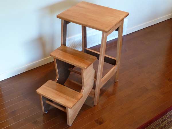I designed and built this folding step-stool for the modern high kitchen cabinets. Old is new again!