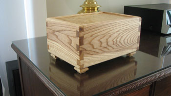 This is another keepsake box. The wood is white ash. The dovetails are hand cut. These are the first dovetails that I cut using my Japanese dovetail saw.