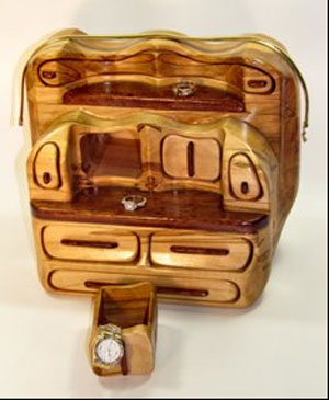 The toy boxes are made from reclaimed pine. The closets, for the American Dolls, are from some trees that were cut down and mill out at a friends place.