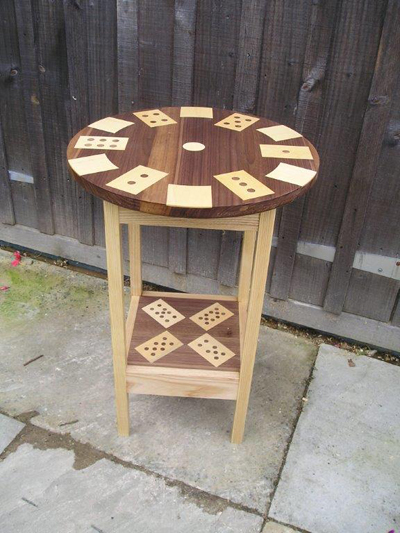 These are two side tables I was asked to make for a group of guys who play poker. The brief was that they had to look like a poker chip.