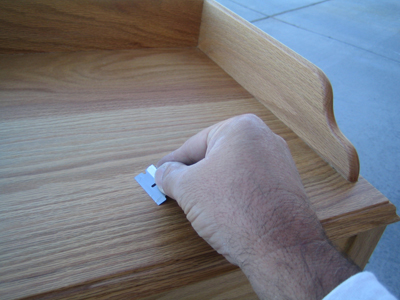 When I want a real smooth finish instead of using steel wool and having all the steel dust to contend with I take a single edge razor blade and “plane” the fulling cured Poly coat with it.