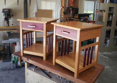 These are two night stands I built for my sister’s guest bedroom. I used the plans from the February 2002 issue of Woodworker’s Journal and modified them to meet my desire for cleaner lines.